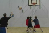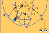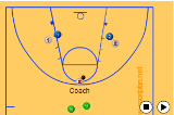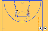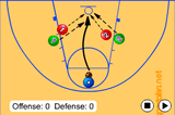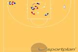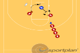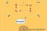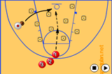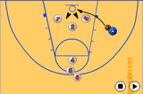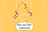 Make the rebound, drive wide from under the basket, and make a pass down-court.