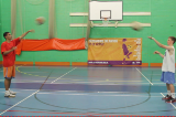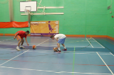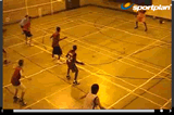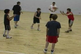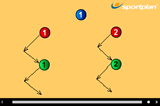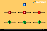 On the coach's first whistle players sprint on the spot, standing with wide feet and their arms outstretched as if defending.