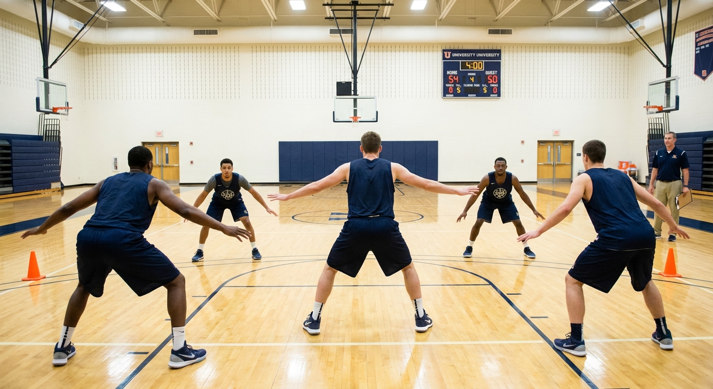 - Cool-Down (5 min): Light jog and stretching. Whiteboard review: draw the three key rotations (top, wing, corner) and quiz players on their responsibilities in each.