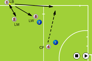 LB plays ball to LW, LW should keep the line free then the player can receive the ball, turn in field or attack down the line.