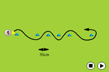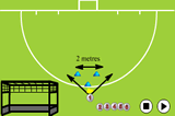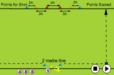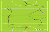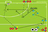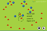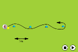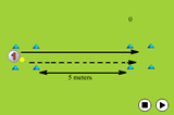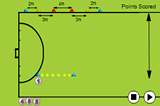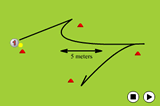 Then when the ball has crossed the line, the player can start withe the next ball but this time he/she has to run with the ball to the left cone and either pull the ball back and hit, or run past the ball and hit it at the target.