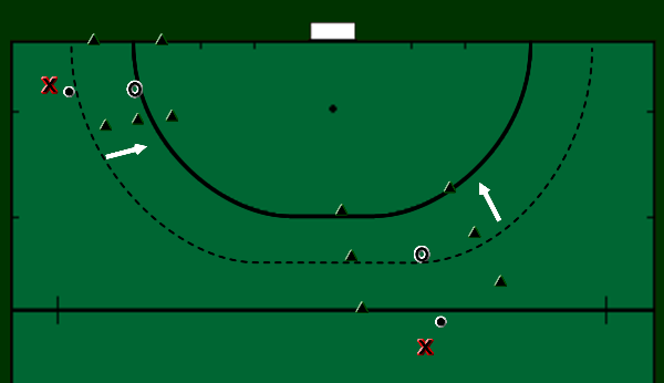 - The ball must still travel 5m before it can be played into the circle, or alternatively be touched by another player.