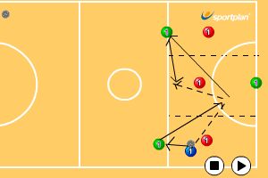 Attackers should be demonstrating a variety of ways of getting free from the defenders i.e. roll, change of direction, dodge, feint dodge.