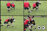 Starting with initially two tacklers and the rest as attackers, players must try to go from one side to the other with a ball in their hands without being tackled.
