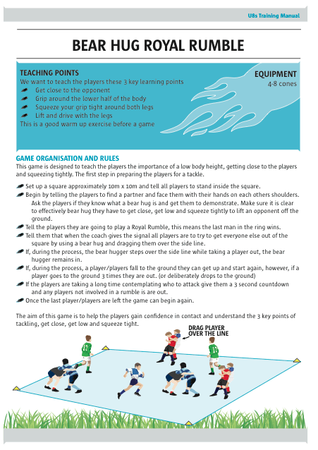 Introduction To Contact Rugby Manual 20 weeks of training sessions:- introducing and increasing confidence in Contact Download the ebook for just £31.99 buy now check conversion rate Full 20 week guide to introducting Contact in Rugby. You are about to take on one of the most difficult seasons for a young rugby player, the year they learn to tackle. Some kids will take to it like a duck to water and others will really struggle with the idea of contact. Your job this season is to get the players to feel confident in contact. Put simply they need to feel happy to get in and grab other players. Lets face it the players won’t be tackling like internationals by the end of the season, however, if they are happy to get amongst the action and bring a player to the ground you have done a great job. You will have two people to win over this season, mum and the player. Mum will be worried her little boy will get hurt every game and so will the player. Your job is to show mum and the young player that tackling is actually just a form of wrestling, much the same as what is done in the back yard. We have devised an enjoyable method for coaching kids contact rugby based on wrestling or the bear hug. Once they understand the 3 key principle of tackle they will find it less daunting. The key principles of a good tackle are; * Get close Save Time & Teach with Confidence Download the ebook for just £31.99buy now check conversion rate What we have done with The Introduction To Contact manual is divide each training session into 4 lots of 10 minute skill development sessions and finish the training session with a modified tackle rugby game to reinforce what they have learnt during the training session. That's a full hour of quality rugby coaching in which the players will love and be focused for the entirety. At the end of the training session the players would have learnt, had fun and will be tired. Mum will love you for that!