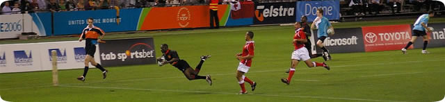 Try time - Uganda score a try versus Tonga during the 2006 Commonwealth Games. Photo by claytonjayscott.com on Flickr.com