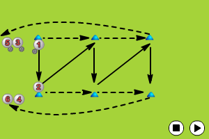 The "Diagonal Pass" drill involves players working in pairs with one ball per pair. Here's how it goes:
