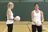 When a player ( one that has played Netball for some years ) receives a pass how do you stop her from taking a giant step and taking time to control balance, instead of a shoulder width step and have control stright away?