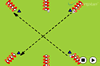Against a defence shifted to one side, the cross-field kick to the far corner can find space. This is a longer kick requiring more accuracy but exploits defensive imbalance.