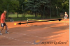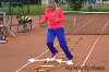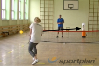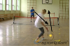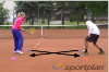 Intention: Assess forehand technique whilst developing the principles of rallying. Players start on their various courts. Each of which has a designated score that is progressive (eg 5, 7, 9) and at the discretion of the coach. Where space is limited, courts can be divided in half or thirds to create stations. One player ('The Sender') starts each rally with an underarm throw to a target area on their partners side of the court, which is situated half way between their partner ('The receiver') and the net. The 'receiver', who is positioned roughly two racket lengths behind the target area, attempts to catch the ball after one bounce. The 'receiver' now becomes the 'sender' and attempts to throw the ball back, using an underarm action, to a target area on their partner’s side of the court, which is positioned roughly half way between their partner and the net. The pair must then continue to throw and catch the ball (after one bounce) using an underarm action until they achieve the score for their designated court/station. If the rally breaks down in any way, the pair must start the rally again from zero on the court/ station they are on. If the players successfully achieve the score for their designated court (or station), they progress upwards (one station) and 'Budge' the pair on the higher station down. If either of the pair lands the ball directly on the target area they automatically progress upwards (one station) and 'Budge' the pair on the higher station down. When a pair achieves the designated score on the highest (top) court they are awarded 1 'golden' point. When a pair successfully achieves a 'golden' point, they attempt another one until they are 'budged'. The game ends when a pair reaches a pre-set number of 'golden' points. Alternatively, the pair with the most 'golden' points at the end of a pre allocated period of time is the winner.