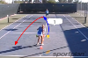 Intention: Assess forehand technique whilst developing the principles of rallying.Players start on their various courts. Each of which has a designated score that is progressive (eg 5, 7, 9) and at the discretion of the coach.Where space is limited, courts can be divided in half or thirds to create stations.One player ('The Sender') starts each rally with an underarm throw to a target area on their partners side of the court, which is situated half way between their partner ("The receiver") and the net.The 'receiver', who is positioned roughly two racket lengths behind the target area, with a racket, attempts to hit the ball after one bounce to a target area on their partner's side of the court, which is positioned roughly half way between their partner and the net.The pair must then continue to throw and hit the ball (after one bounce) until they achieve the score for their designated court/station.If the rally breaks down in any way, the pair must start the rally again from zero on the court/ station they are on.If the players successfully achieve the score for their designated court (or station), they progress upwards (one station) and 'Budge' the pair on the higher station down.If either of the pair lands the ball directly on the target area they automatically progress upwards (one station) and 'Budge' the pair on the higher station down.When a pair achieves the designated score on the highest (top) court they are awarded 1 'golden' point.When a pair successfully achieves a 'golden' point, they attempt another one until they are 'budged'.The game ends when a pair reaches a pre-set number of 'golden' points. Alternatively, the pair with the most 'golden' points at the end of a pre allocated period of time is the winner.